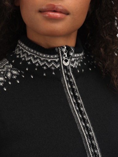 Made with 100% long-lasting lightweight wool, this classic jacket features the traditional Norwegian eight-petal rose, a long-time motif of ours. The rose is updated with softened edges, making a feminine form with rounded petals. Flattering, braided side panels and the letters CXL, the Roman numerals for 140, discretely integrated in the back, tops it off.