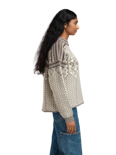 The updated 1994 sweater retains the distinctive symbols inspired by Norse mythology but is crafted in a thinner, softer yarn, with an improved fit and refreshed color palette. Knitted at our factory in Dale, Norway, it is made of 100% wool – just like the original.
