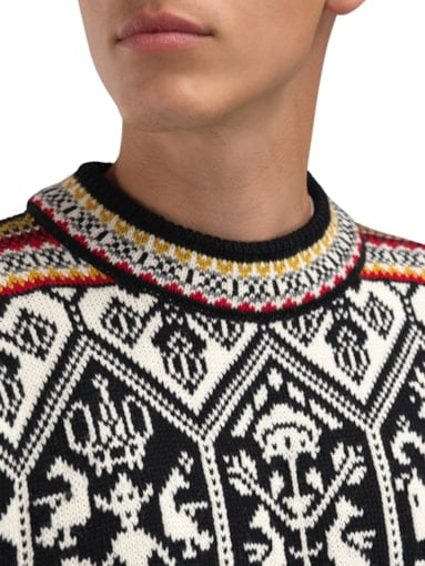 The updated 1994 sweater retains the distinctive symbols inspired by Norse mythology but is crafted in a thinner, softer yarn, with an improved fit and refreshed color palette. Knitted at our factory in Dale, Norway, it is made of 100% wool – just like the original.