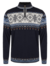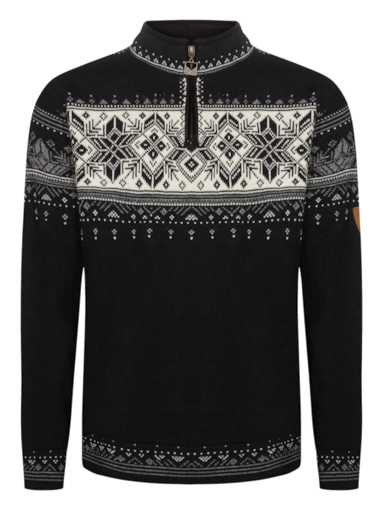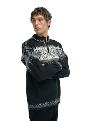 • The Blyfjell is a best-selling men's sweater rooted in timeless Norwegian tradition. Made from 100% lightweight wool, it offers natural warmth and comfort while featuring a quarter-zip neckline with a fleece-lined collar for added softness. The intricate design showcases classic Norwegian folk patterns, including variations of the iconic eight-petal rose – a symbol of Norwegian heritage and artistry.