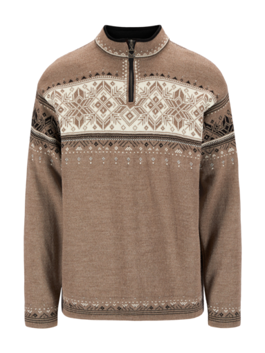 The Blyfjell is a best-selling men's sweater rooted in timeless Norwegian tradition. Made from 100% lightweight wool, it offers natural warmth and comfort while featuring a quarter-zip neckline with a fleece-lined collar for added softness. The intricate design showcases classic Norwegian folk patterns, including variations of the iconic eight-petal rose – a symbol of Norwegian heritage and artistry.