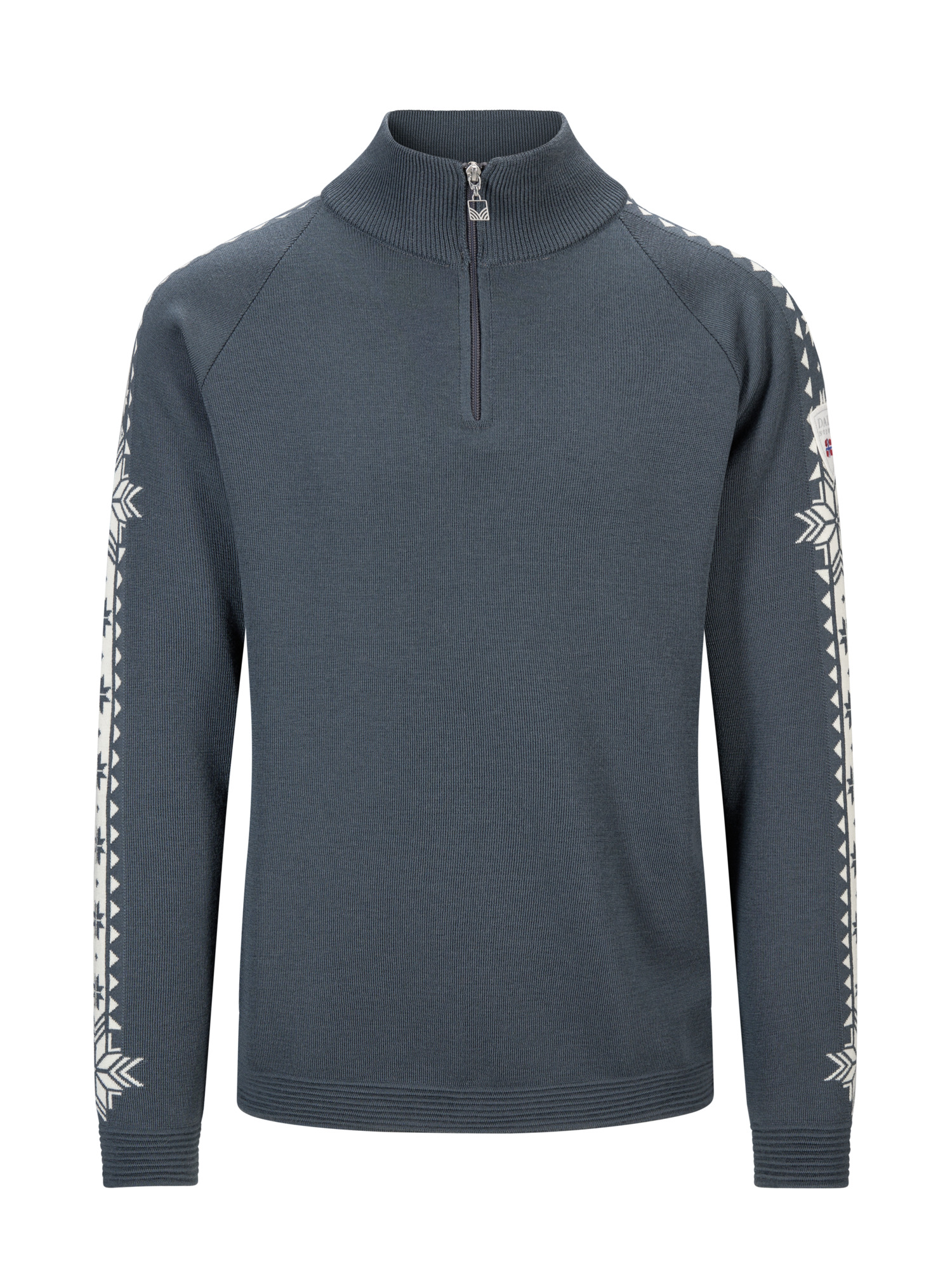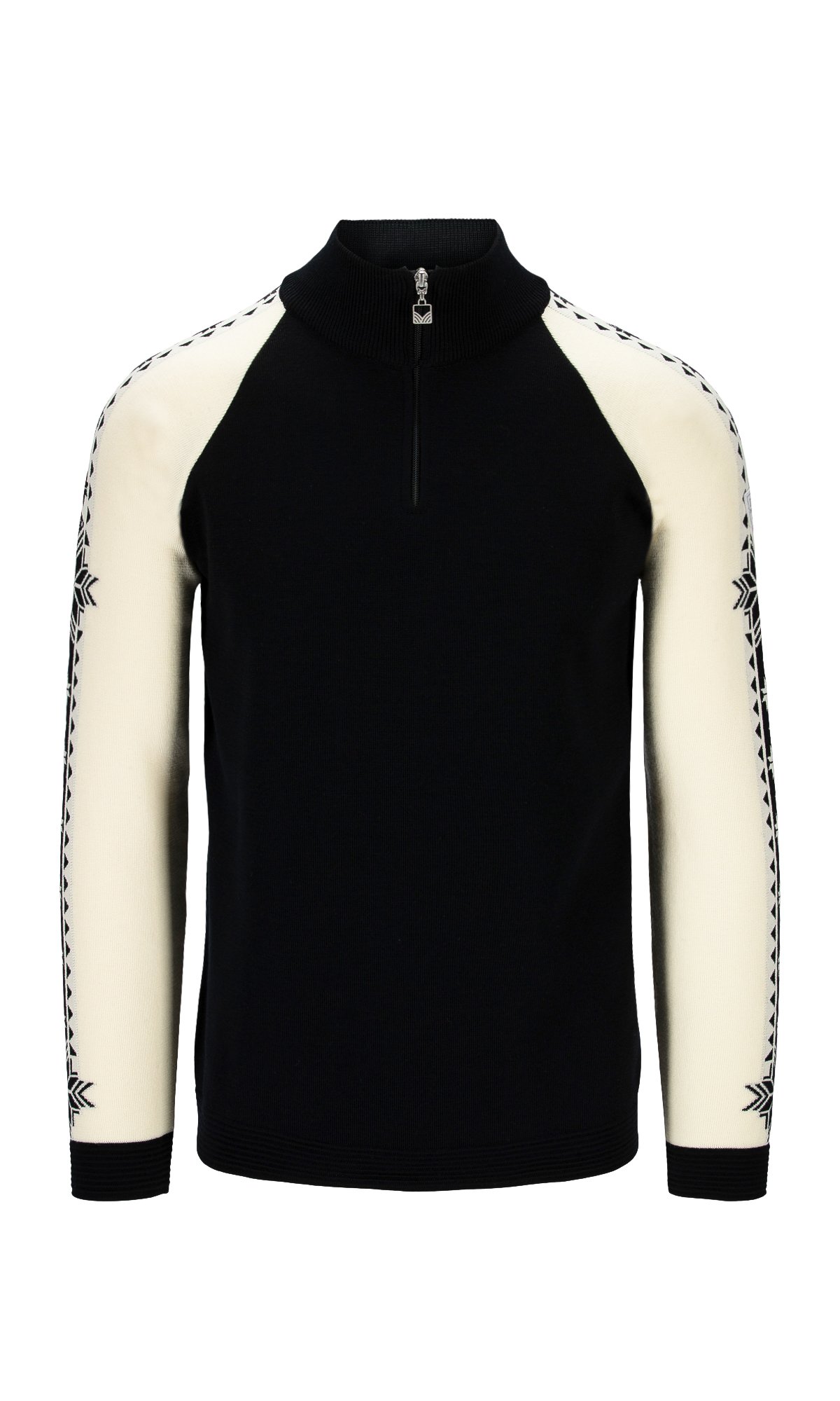 The rib-knit construction provides natural stretch, ensuring lasting comfort and flexibility for an active lifestyle. A quarter-zip and medium-high neck add versatility on and off the slopes. Along the sleeves, a repeating pattern of the Norwegian eight-petal rose complements a larger version of the same motif in the neck – creating a look that’s both refined and sporty.