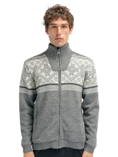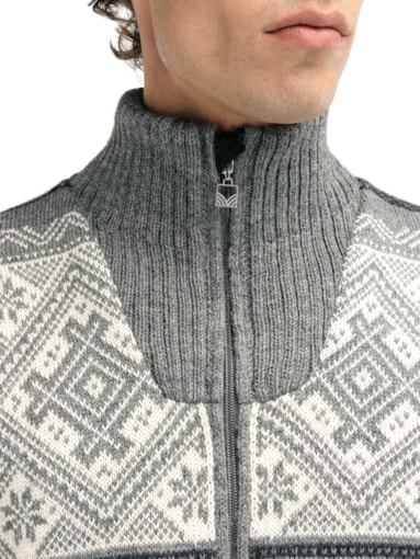 The Hardanger jacket is a windproof, retro-inspired wool jacket designed for year-round wear. Knitted from 100% longl-lasting Norwegian wool, it offers exceptional warmth, durability, and breathability, making it a reliable outerwear piece for all seasons. The jacket features a windproof lining, high neck, and two practical zippered pockets, combining classic Norwegian knitwear with functional design.