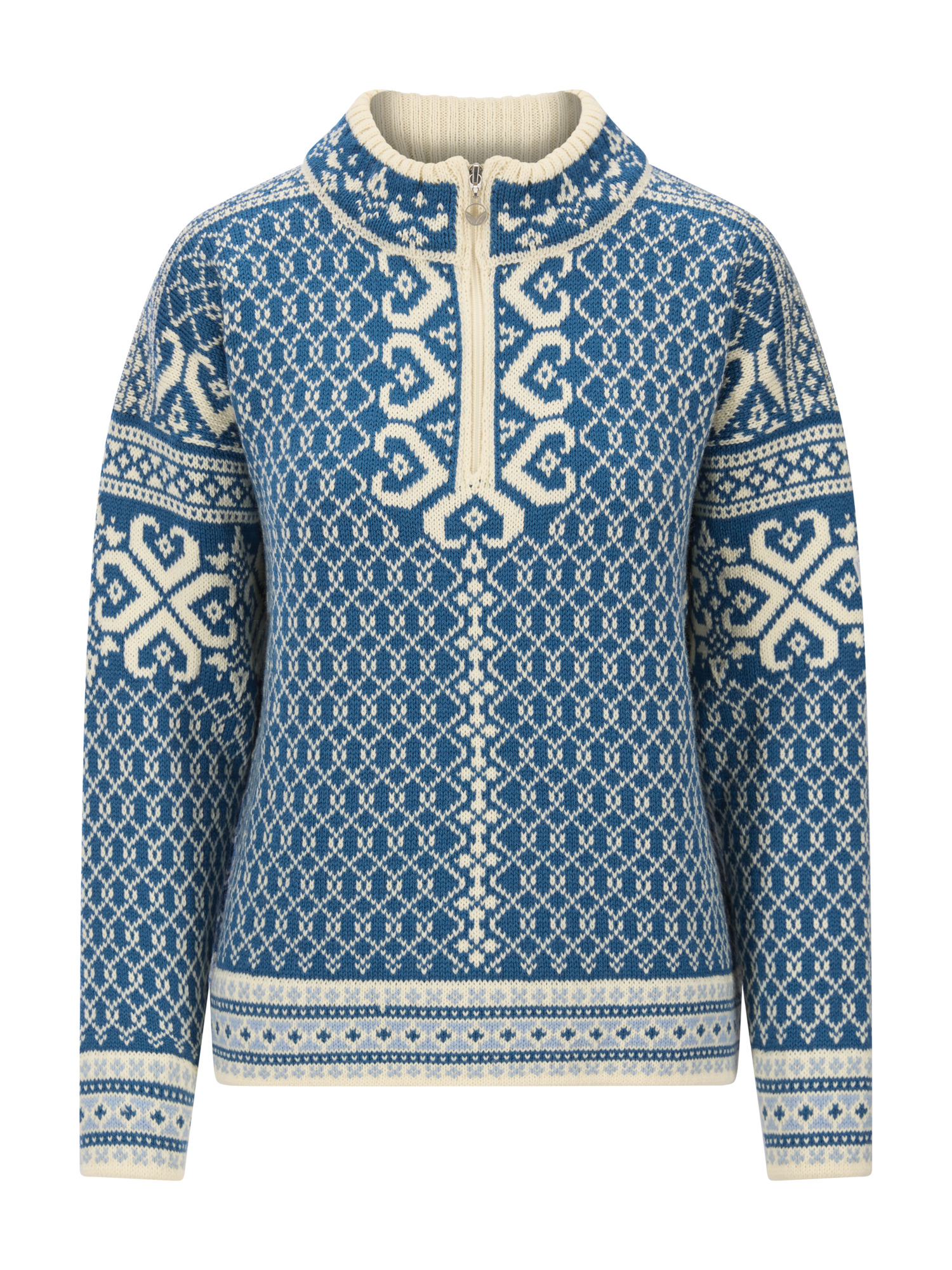 A heavy knitted, detailed, patterned wool sweater with a relaxed fit. The sweater has a semi-high neck with zipper and is knitted in 100% long-lasting wool. You can use Leknes both as a hiking sweater and for everyday wear. With a traditional Norwegian pattern and updated fit, this is a wool sweater that is both timeless and nostalgic.