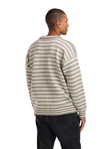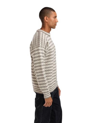 The Skipsleia sweater is a versatile unisex knit, designed as an effortlessly stylish layer. With its relaxed fit and allover stripe pattern paired with the traditional lice design, this sweater strikes the perfect balance between classic charm and contemporary comfort. As a unisex piece, it offers a slightly oversized look for women and a regular fit for men, creating an easygoing and adaptable style for everyone. Inspired by the historic Fana sweater and the iconic “Islender,” traditionally worn by Norwegian fishermen, the Skipsleia sweater incorporates distinctive stripes in the ribbing, enhancing its rugged workwear appeal. Designed with clean, simple lines, the Skipsleia sweater is made to stand the test of time. The Skipsleia sweater in colorway M00 is made from premium undyed lightweight wool, utilizing the natural colors of the animal fiber. This approach not only highlights the beauty of the wool in its most authentic form but also preserves its natural qualities by eliminating the dyeing process, resulting in a garment that is as natural as it is stylish. - XS – XXL