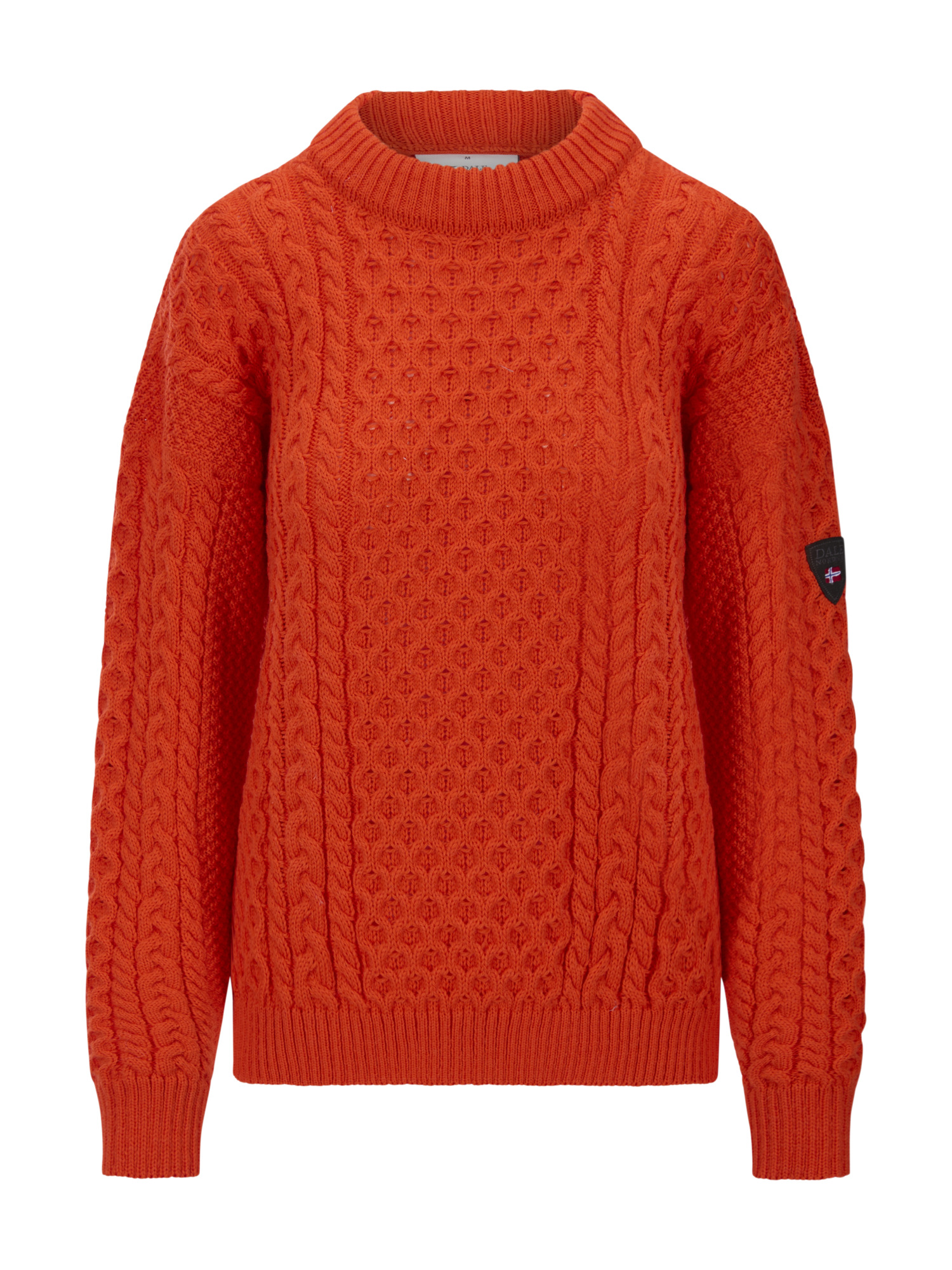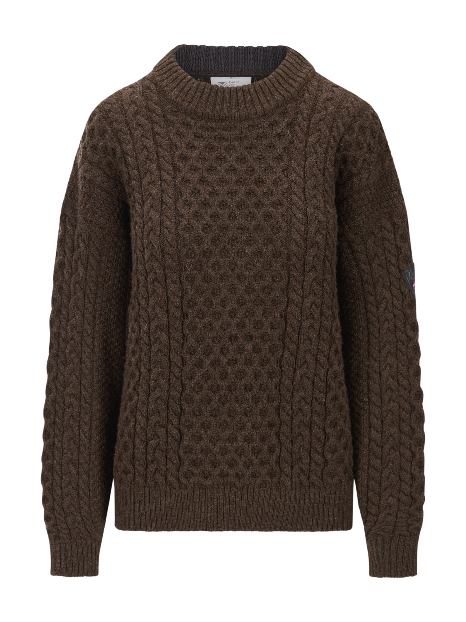 This pullover brings classic Aran traditions into a contemporary setting, highlighting the heritage and craftsmanship behind its richly structured knit.