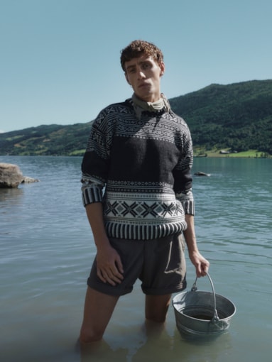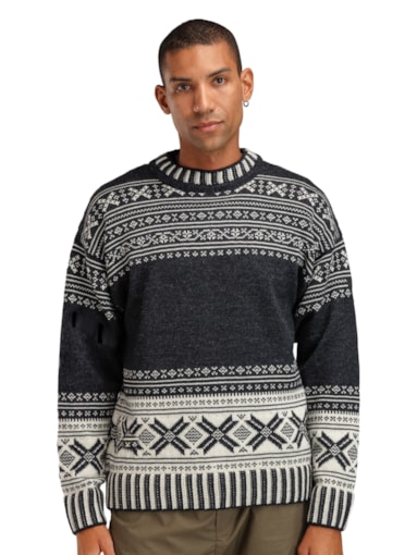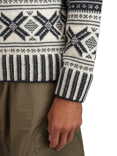 • The Torridal sweater seamlessly blends heritage with contemporary style, featuring a striking stripe and rib effect at the neckline, cuffs, and bottom hem. Designed for a comfortable and relaxed fit, the Torridal showcases beautiful patterns concentrated in the yoke and hemline, creating a visually appealing and distinct look. Crafted from authentic Norwegian wool, the Torridal sweater is inspired by our traditional Setesdal garments, offering a modern update that honors the rich history of the iconic “Lusekofta.” By omitting the traditional lice pattern, Torridal takes on a fresh identity, making it a versatile piece for everyday wear.