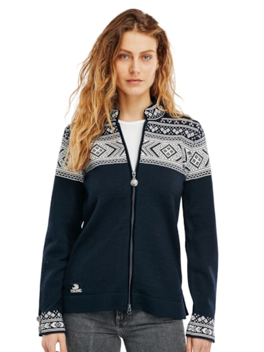 • Our Viking Karine sweater comes in navy and a light blue version. Made of the finest, durable, 100% lightweight wool, inspired by the textile of the Osebergship, with a zipper pull fashioned after a Viking Age brooch c. 800 - 1050 AD with a Urnes-style motif.